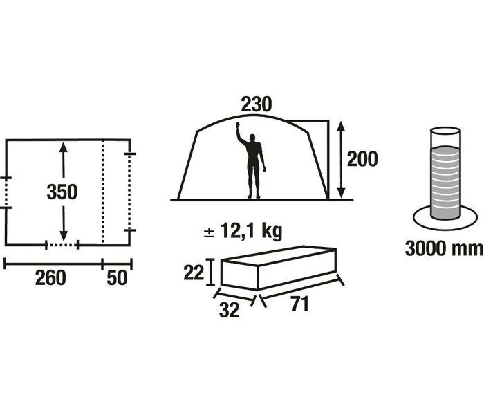 Buitentent : 100 % polyester 3000 mm waterkolom