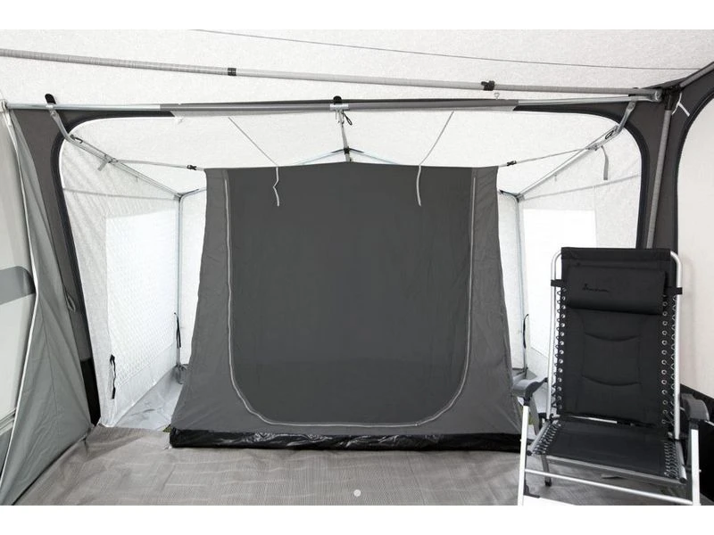 De binnentent is de perfecte slaapcabine voor de kinderen of eventuele gasten. Hij is gemaakt van een donkergrijs materiaal dat het licht buitensluit. Voor een optimaal binnenklimaat in de slaapcabine is de binnentent voorzien van horrengaas en een vaste bodem. Dit zorgt voor een goede ventilatie en zo weinig mogelijk vocht vanuit de grond.