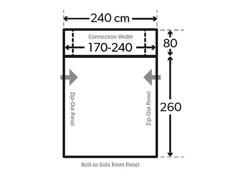 Drive-awaysets bieden een veilige manier om uw voortent aan uw camper te bevestigen. Verbind simpelweg de 8-vormige strip van de pees langs de ene rand voordat u de voorgenaaide voortentpees langs de andere bevestigt. Schuif de 8-vormige strip weg en laat de voortent vrijstaan op uw kampeerplek.