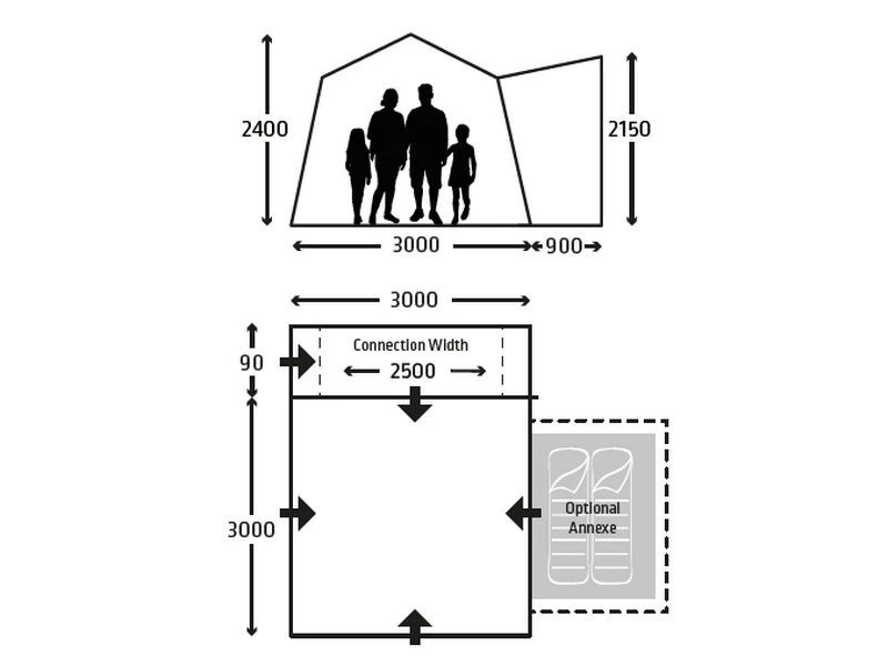 Voor extra gemak hebben alle tenten kabel ingangspunten voor 12V en netkabel toegang.
